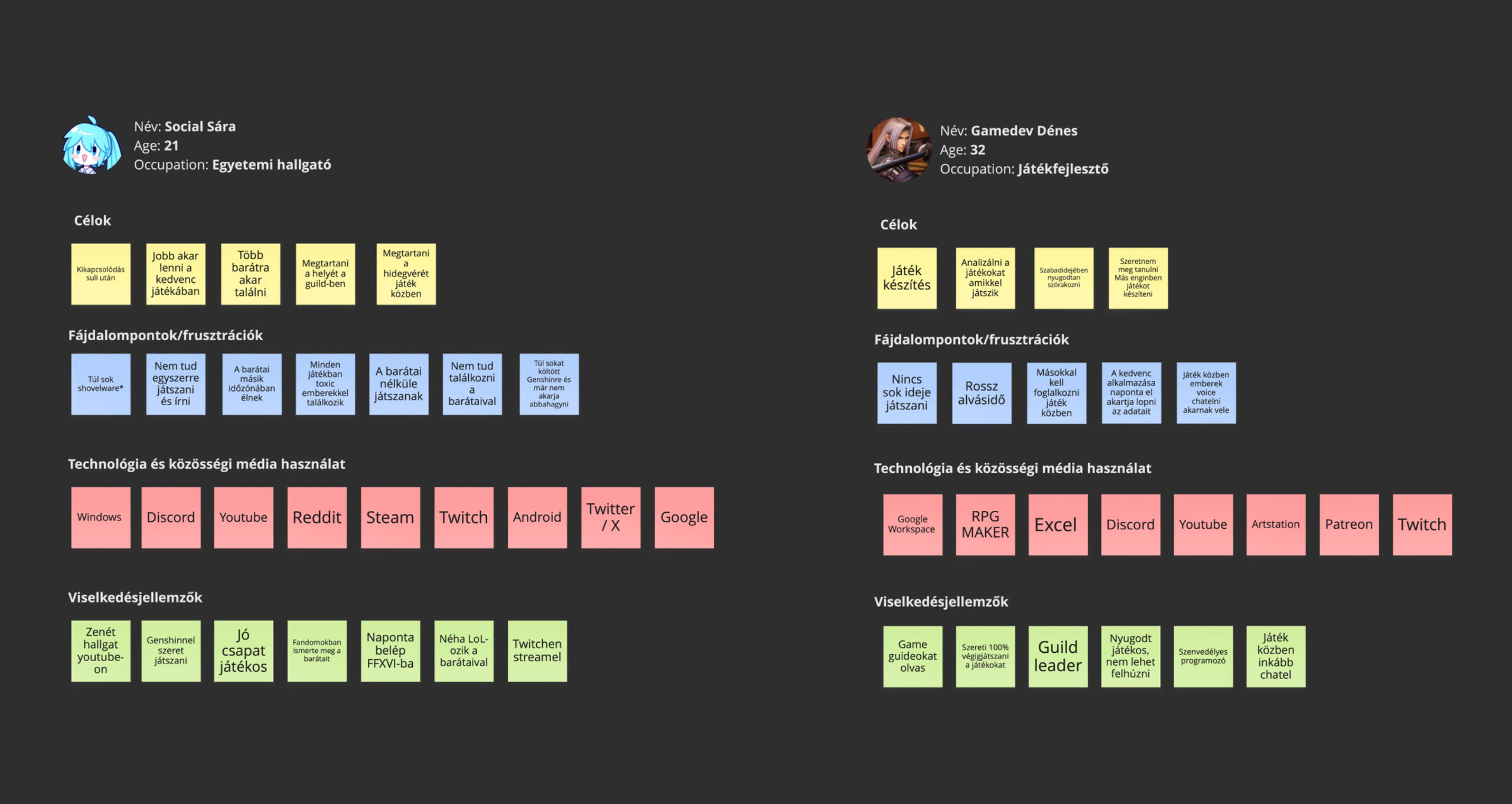 A kutatási eredmények alapján két perszónát hoztunk létre, akik jól reprezentálják a célközönség különböző típusait.